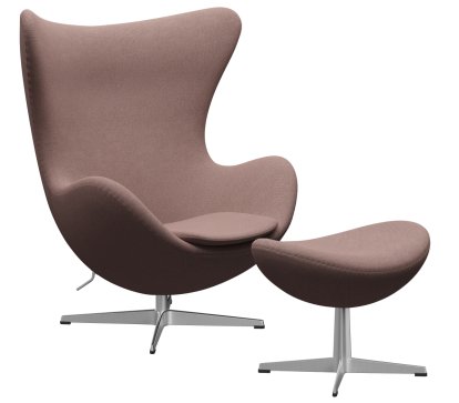 Fauteuil Egg (Oeuf), Re-wool, 648 - Rose pâle/naturel, Aluminium satiné et poli, Avec repose-pied