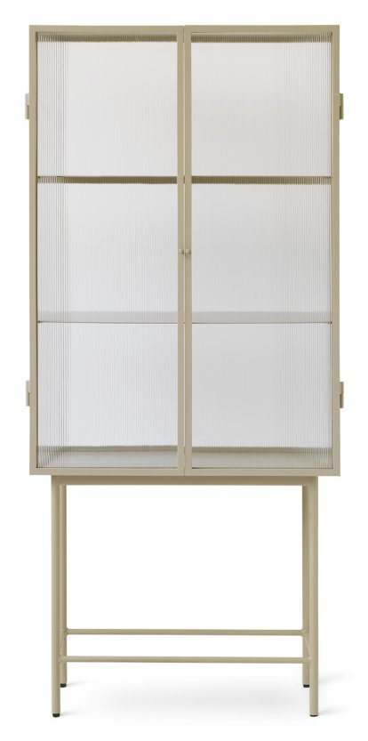 La vitrine Haze de Ferm Living présente ses objets préférées, placées de façon décorative sur deux étagères en métal. En coopération avec Says Who, la vitrine design avec du verre armé ou ondulé a été créée comme un accroche-regard incontournable, universellement applicable et classiquement chic.
