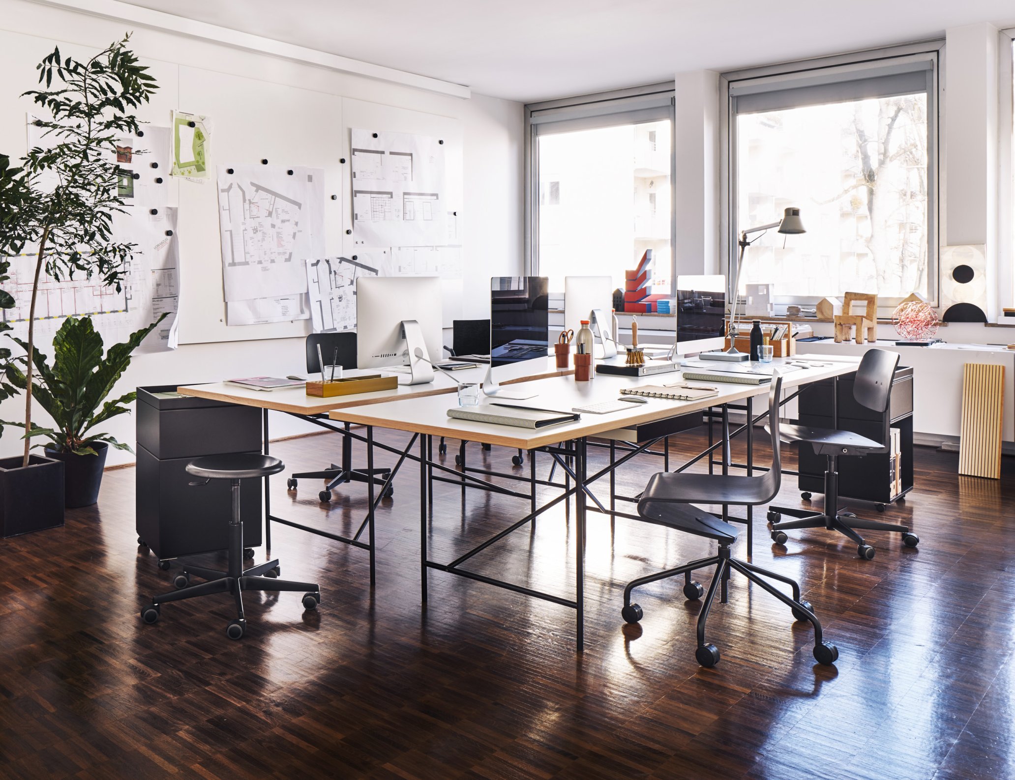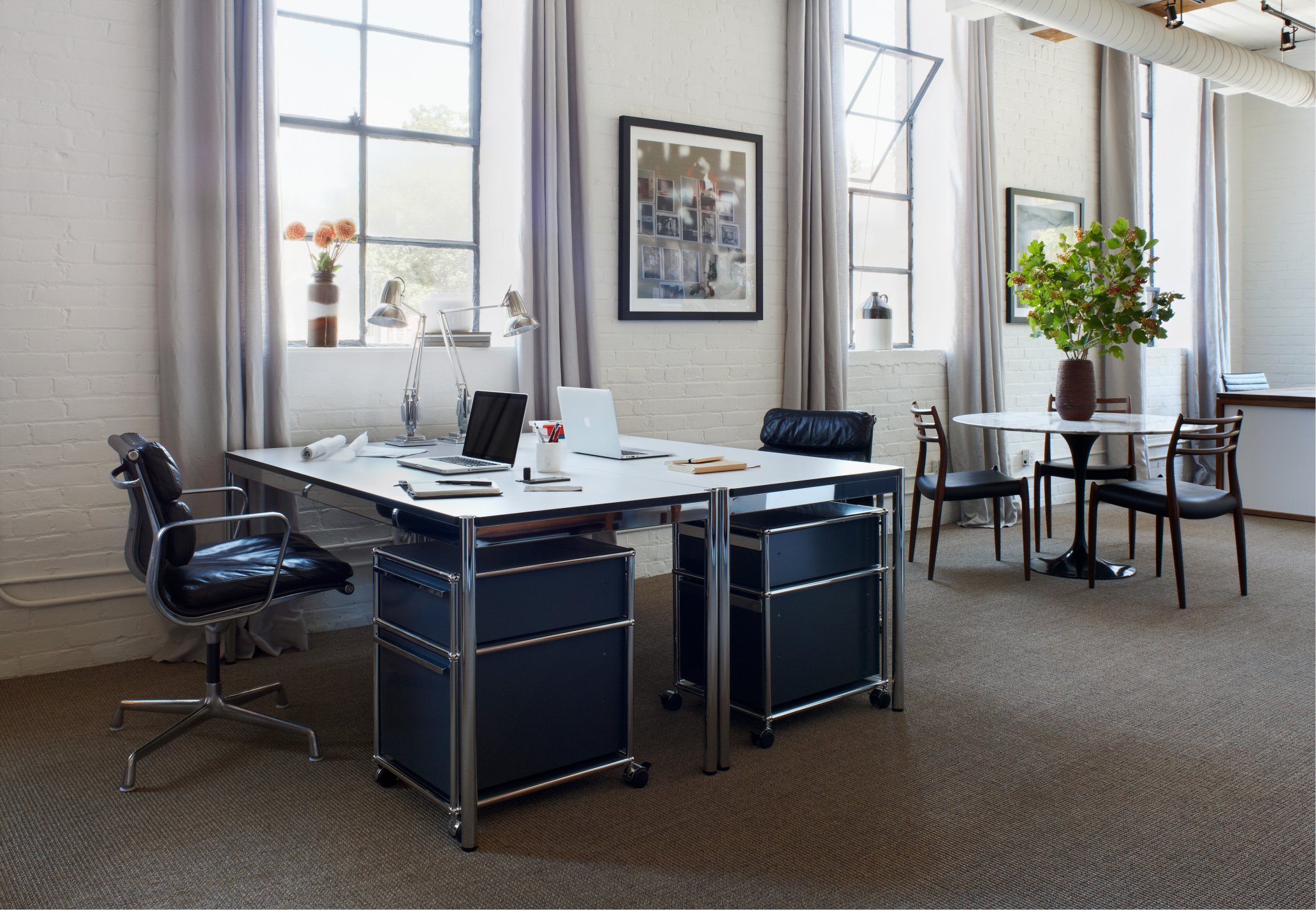 Nous osons avancer la thèse qu'il serait plus agréable et donc plus efficace de travailler dans un bureau moderne aux couleurs et meubles harmonisés que dans une salle multifonctionnelle sombre et confuse. Effectivement, l'art de l'agencement intérieur réside avant tout dans la combinaison entre fonctionnalité et esthétisme et dans l'utilisation optimale de l'espace disponible. De nombreux fabricants proposent aujourd'hui un compromis parfait avec leur mobilier de bureau flexible. Des tables réglables en hauteur aux chaises de bureau ergonomiques en passant par les solutions de rangement, des entreprises renommées telles que Vitra, USM et Vario proposent une large gamme de meubles design pour le bureau ou le travail à domicile.