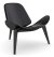 Chaise CH07 Shell, Chêne laqué noir, Cuir noir