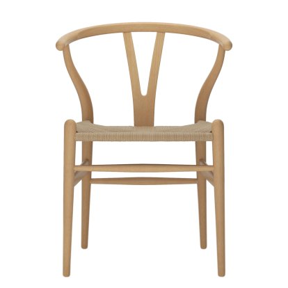 Hans J. Wegner, qui conçut la chaise CH24 Wishbone Chair en 1949, était présent fin des années 1940 dans des cercles d’experts et reconnut par les critiques pour son design extraordinaire. Le manager commercial du fabricant Carl Hansen & Søn de l’époque, Eivind Kold Christensen, reconnut le potentiel du designer Wegner lors d’une de ses expositions en 1949 à Copenhague et lui proposa ainsi la fabrication des chaises pour Carl Hansen & Søn. Dès lors, Wegner développe quatre modèles, dont la chaise CH24, qui contrairement à ses modèles précédents sont fabriqués en partie avec des machines et donc adéquats pour la production en série. La chaise CH24 pour Carl Hansen ne fut pas seulement un vif succès pour le designer, mais aussi un produit-phare de la gamme du fabricant. La caractéristique de la chaise CH24 Wishbone Chair est la forme en Y de son dossier, d’où parfois son nom de chaise Y. La CH24 possède un design épuré et ergonomique de façon très harmonieuse et offre un confortable espace d’assise contrairement aux autres chaises de Wegner. Le succès infaillible de la chaise CH24 se reconnaît par la fabrication continuelle par le fabricant depuis plus de 60 ans et revient certainement à son beau galbe et à la qualité du fait main.