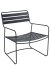 | Matériaux | Assise et dossier: lamelles de tôle d'acier découpées au laser cadre et accotoirs : tige en acier Revêtement en poudre anti-UV |