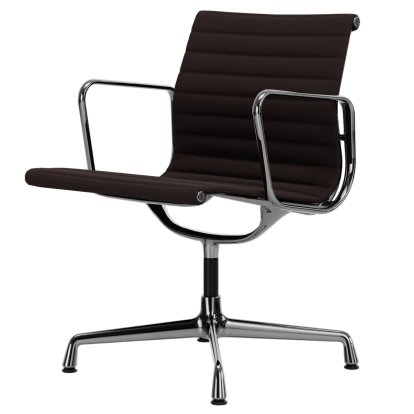 Les chaises EA 107/108 sont le résultat d’une commande que Ray et Charles Eames reçurent de leur ami de longue date l’architecte Eero Saarinen. Celui-ci cherchait une chaise de très haute qualité pour l’espace extérieur de la villa privée d’Herman Miller, celle-ci construite en collaboration avec Alexander Girard. Après une longue phase de prototypage, Charles & Ray Eames présentèrent enfin le concept Aluminium Chair. Ce dernier était pensé pour concevoir toute une série de chaises dont la chaise EA 108 fait partie. Les chaises avaient en commun les matériaux et le principe de construction. L’assise et le dossier ainsi que les accotoirs forment des parties latérales en l’aluminium injecté sur lesquelles du tissu ou du cuir sont tendus. Le « revêtement » n‘est donc pas une housse, mais la partie qui tient la construction. La forme des parties latérales s’inspire de la colonne vertébrale de l’homme afin de la physionomie du corps s’adapte parfaitement au galbe de la chaise. L’Alu chair EA 108 pour Vitra dispose d’un piètement pivotant à la différence de la chaise EA 107. Les chaises Alu EA 107 et EA 108 sont d’élégantes et raffinées chaises de conférences notamment grâce au spectre de couleurs et de matières du revêtement. On l’apprécie également comme chaise de bureau dans l’espace domestique et professionnel.