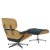 L’assise et le dossier sont en contreplaqué courbé-moulé et sont revêtus de coussins de cuir rembourrés de mousse et Dacron. Une partie de la coque constitue l’assise, une autre le dossier et la dernière l’appui-tête. La construction repose sur une structure en aluminium poli ou chromé avec côtés noirs si souhaité. Cette structure est composée d’un piétement central pivotant et de cinq pieds en forme d’étoile. Les accoudoirs en cuir tous aussi importants, sont également rembourrés et s’intègrent parfaitement à l’ensemble du design. L’Ottomane Eames accompagne de même ce design avec un piètement non-pivotant à quatre pieds, une coque de contreplaqué moulé et un revêtement en cuir rembourré. Le fauteuil Lounge Chair et son Ottomane sont disponibles en différentes sortes de bois et en un large choix de couleurs de cuir. Les Lounge Chairs & Ottoman Eames sont fabriqués, tout comme les autres meubles Eames, par Vitra pour l’Europe et l’Asie. Le succès de cette production n’a pas changé depuis 50 ans. La fabrication de ce classique du design des Eames comporte 47 étapes qui sont pour la plus part réalisées à la main. Ce qui a changé au cours des 50 dernières années, c’est la taille moyenne des individus. Celle-ci a augmenté de près de 10 cm selon les régions. C’est pourquoi le fauteuil Lounge Chair de Vitra a adapté la hauteur d’assise originelle de 84 cm et propose maintenant également une hauteur de 89 cm. Vitra, le fabricant du Lounge Chair & Ottoman offre à ses clients une expérience hors du commun. Effectivement, les visiteurs du Lounge Chair Atelier sur le Vitra Campus ont la possibilité de plonger dans l’univers Eames et d’accompagner la production de ce classique du design. Ils jetteront ainsi un coup d’œil au-dessus de l’épaule des professionnels de l’atelier afin d’observer les techniques et outils spéciaux utilisés pour la fabrication d’un original Lounge Chair et de son Ottomane par Vitra. À l’origine la coque du Lounge Chair ainsi que de son Ottomane était réalisée à partir du palissandre brésilien. Ce noble bois étant d’une grande rareté, a été interdit de commercialisation à partir de 1968 et, est classé depuis 1968 comme espèce protégée. Afin de se rapprocher optiquement le plus de ce bois, le Lounge Chair Vitra et la Lounge Chair Ottomane sont fabriqués avec du palissandre Santos. Après une version conçue par Hella Jongerius en noyer pigmenté blanc, Vitra a également ajouté à son assortiment une édition dont la coque est fabriquée en noyer pigmenté noir. Tous les placages du Lounge Chair et de l’Ottomane sont issus de bois où la gestion durable des forêts est appliquée. De plus, le siège Lounge Chair comme l’Ottomane Eames sont composés à 24 % de matériaux recyclés et ces meubles sont eux-mêmes recyclables à 29 %. Bien qu’ils puissent être recyclés, le Lounge Chair et l’Ottomane de Vitra sont théoriquement davantage pensés comme un classique du design que l’on transmet de générations en générations. Ce classique du design prend de la valeur avec le temps - non pas parce que la coque se patine avec le temps mais davantage par l'aspect du cuir qui comme Charles Eames le visualait à l'aspect d'un gant de premier gardien de base de baseball.