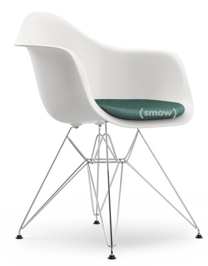 Eames Plastic Armchair RE DAR, Blanc non-RE, Avec coussin d'assise, Bleu glacier / ivoire, Version standard - 43 cm, Chromé