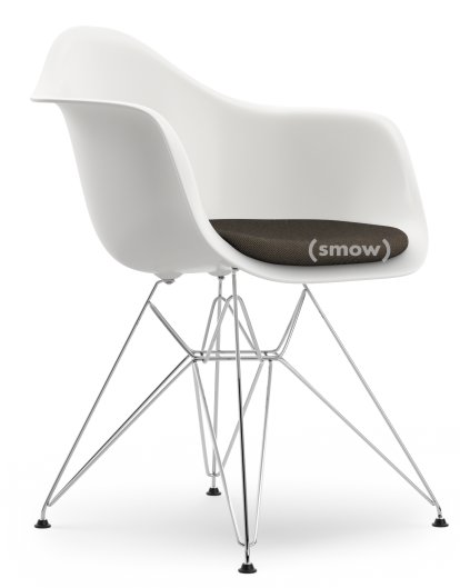 Eames Plastic Armchair RE DAR, Blanc non-RE, Avec coussin d'assise, Gris chaud / marron marais, Version standard - 43 cm, Chromé
