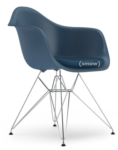 Eames Plastic Armchair RE DAR Bleu océan|Avec coussin d'assise|Bleu océan / gris foncé|Version standard - 43 cm|Chromé