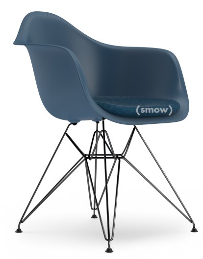 Eames Plastic Armchair RE DAR, Bleu océan, Avec coussin d'assise, Bleu océan / gris foncé, Version standard - 43 cm, Revêtement basic dark