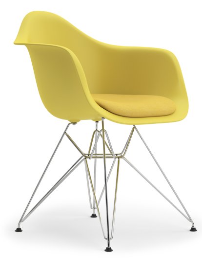 Eames Plastic Armchair RE DAR, Moutarde, Sans rembourrage, Sans rembourrage, Version standard - 43 cm, Chromé