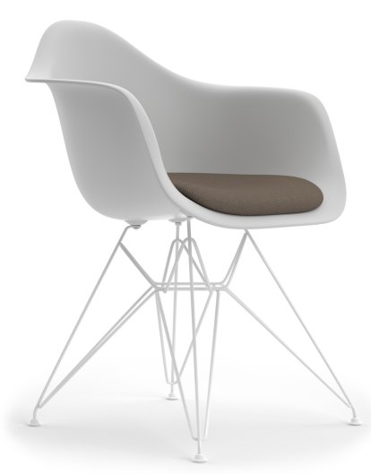 Eames Plastic Armchair RE DAR, Coton blanc, Avec coussin d'assise, Gris chaud / marron marais, Version standard - 43 cm, Revêtement blanc