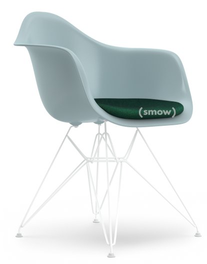 Eames Plastic Armchair RE DAR, Gris bleuté, Avec coussin d'assise, Menthe / forêt, Version standard - 43 cm, Revêtement blanc