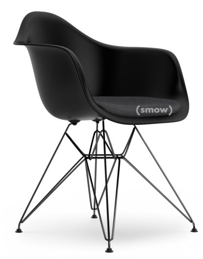 Eames Plastic Armchair RE DAR, Noir profond , Avec coussin d'assise, Gris foncé, Version standard - 43 cm, Revêtement basic dark