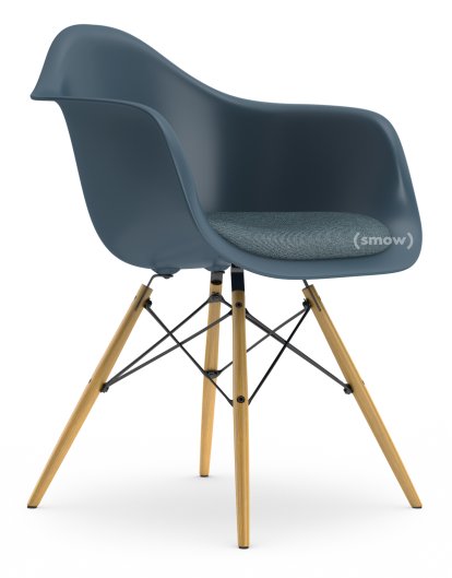 Eames Plastic Armchair RE DAW, Bleu océan, Avec coussin d'assise, Bleu glacier / marron marais, Version standard - 43 cm, Frêne tons miel