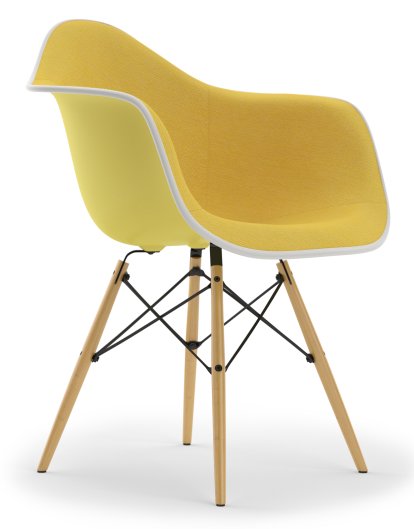 En utilisant des procédés de fabrications et des matériaux nouveaux, Charles et Ray Eames révolutionnèrent plus d’une fois l’histoire du mobilier. Ce fut le cas notamment avec les plastic chairs, qui furent conçues en 1948 à l’occasion du concours organisé par le Museum of Modern Art de New York : "International Competition for Low Cost Furniture". Avec leurs chaises dont l’assise est constituée d’un seul bloc en résine de polyester renforcée de fibre de verre, les Eames remportèrent la deuxième place. Ce matériau présentait de nombreux avantages parmi lesquels sa souplesse, son prix abordable et la possibilité de produire les chaises en grandes séries, ce qui répondait tout à fait aux besoins de l’Amérique des années 1950. En plus du fauteuil DAW, Charles et Ray Eames créèrent bien d’autres chaises en plastique adaptées à diverses situations grâce à différents types d’assises et de piètements. On les retrouve d’ailleurs aujourd’hui dans de nombreux musées et dans un nombre incalculable de foyers. Pour ce qui est du Eames DAW, il s’agit d’un fauteuil confortable avec des pieds en érable. Charles et Ray Eames décrivaient l'un de leurs objectifs primordiaux en tant que créateurs de mobilier comme suit : « Rendre le meilleur accessible au plus grand nombre ». Parmi leurs créations, aucune autre ne semble leur avoir permis de s'approcher autant de cet idéal que le fauteuil DAW.