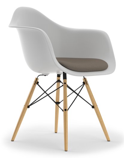En utilisant des procédés de fabrications et des matériaux nouveaux, Charles et Ray Eames révolutionnèrent plus d’une fois l’histoire du mobilier. Ce fut le cas notamment avec les plastic chairs, qui furent conçues en 1948 à l’occasion du concours organisé par le Museum of Modern Art de New York : "International Competition for Low Cost Furniture". Avec leurs chaises dont l’assise est constituée d’un seul bloc en résine de polyester renforcée de fibre de verre, les Eames remportèrent la deuxième place. Ce matériau présentait de nombreux avantages parmi lesquels sa souplesse, son prix abordable et la possibilité de produire les chaises en grandes séries, ce qui répondait tout à fait aux besoins de l’Amérique des années 1950. En plus du fauteuil DAW, Charles et Ray Eames créèrent bien d’autres chaises en plastique adaptées à diverses situations grâce à différents types d’assises et de piètements. On les retrouve d’ailleurs aujourd’hui dans de nombreux musées et dans un nombre incalculable de foyers. Pour ce qui est du Eames DAW, il s’agit d’un fauteuil confortable avec des pieds en érable. Charles et Ray Eames décrivaient l'un de leurs objectifs primordiaux en tant que créateurs de mobilier comme suit : « Rendre le meilleur accessible au plus grand nombre ». Parmi leurs créations, aucune autre ne semble leur avoir permis de s'approcher autant de cet idéal que le fauteuil DAW.