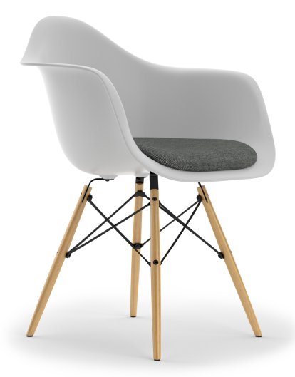 En utilisant des procédés de fabrications et des matériaux nouveaux, Charles et Ray Eames révolutionnèrent plus d’une fois l’histoire du mobilier. Ce fut le cas notamment avec les plastic chairs, qui furent conçues en 1948 à l’occasion du concours organisé par le Museum of Modern Art de New York : "International Competition for Low Cost Furniture". Avec leurs chaises dont l’assise est constituée d’un seul bloc en résine de polyester renforcée de fibre de verre, les Eames remportèrent la deuxième place. Ce matériau présentait de nombreux avantages parmi lesquels sa souplesse, son prix abordable et la possibilité de produire les chaises en grandes séries, ce qui répondait tout à fait aux besoins de l’Amérique des années 1950. En plus du fauteuil DAW, Charles et Ray Eames créèrent bien d’autres chaises en plastique adaptées à diverses situations grâce à différents types d’assises et de piètements. On les retrouve d’ailleurs aujourd’hui dans de nombreux musées et dans un nombre incalculable de foyers. Pour ce qui est du Eames DAW, il s’agit d’un fauteuil confortable avec des pieds en érable. Charles et Ray Eames décrivaient l'un de leurs objectifs primordiaux en tant que créateurs de mobilier comme suit : « Rendre le meilleur accessible au plus grand nombre ». Parmi leurs créations, aucune autre ne semble leur avoir permis de s'approcher autant de cet idéal que le fauteuil DAW.