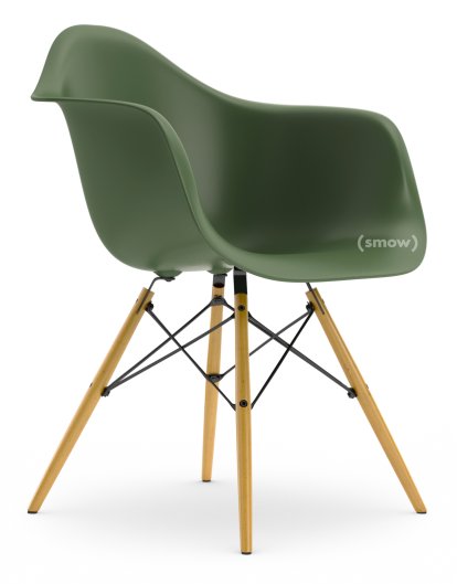 En utilisant des procédés de fabrications et des matériaux nouveaux, Charles et Ray Eames révolutionnèrent plus d’une fois l’histoire du mobilier. Ce fut le cas notamment avec les plastic chairs, qui furent conçues en 1948 à l’occasion du concours organisé par le Museum of Modern Art de New York : "International Competition for Low Cost Furniture". Avec leurs chaises dont l’assise est constituée d’un seul bloc en résine de polyester renforcée de fibre de verre, les Eames remportèrent la deuxième place. Ce matériau présentait de nombreux avantages parmi lesquels sa souplesse, son prix abordable et la possibilité de produire les chaises en grandes séries, ce qui répondait tout à fait aux besoins de l’Amérique des années 1950. En plus du fauteuil DAW, Charles et Ray Eames créèrent bien d’autres chaises en plastique adaptées à diverses situations grâce à différents types d’assises et de piètements. On les retrouve d’ailleurs aujourd’hui dans de nombreux musées et dans un nombre incalculable de foyers. Pour ce qui est du Eames DAW, il s’agit d’un fauteuil confortable avec des pieds en érable. Charles et Ray Eames décrivaient l'un de leurs objectifs primordiaux en tant que créateurs de mobilier comme suit : « Rendre le meilleur accessible au plus grand nombre ». Parmi leurs créations, aucune autre ne semble leur avoir permis de s'approcher autant de cet idéal que le fauteuil DAW.