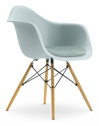 En utilisant des procédés de fabrications et des matériaux nouveaux, Charles et Ray Eames révolutionnèrent plus d’une fois l’histoire du mobilier. Ce fut le cas notamment avec les plastic chairs, qui furent conçues en 1948 à l’occasion du concours organisé par le Museum of Modern Art de New York : "International Competition for Low Cost Furniture". Avec leurs chaises dont l’assise est constituée d’un seul bloc en résine de polyester renforcée de fibre de verre, les Eames remportèrent la deuxième place. Ce matériau présentait de nombreux avantages parmi lesquels sa souplesse, son prix abordable et la possibilité de produire les chaises en grandes séries, ce qui répondait tout à fait aux besoins de l’Amérique des années 1950. En plus du fauteuil DAW, Charles et Ray Eames créèrent bien d’autres chaises en plastique adaptées à diverses situations grâce à différents types d’assises et de piètements. On les retrouve d’ailleurs aujourd’hui dans de nombreux musées et dans un nombre incalculable de foyers. Pour ce qui est du Eames DAW, il s’agit d’un fauteuil confortable avec des pieds en érable. Charles et Ray Eames décrivaient l'un de leurs objectifs primordiaux en tant que créateurs de mobilier comme suit : « Rendre le meilleur accessible au plus grand nombre ». Parmi leurs créations, aucune autre ne semble leur avoir permis de s'approcher autant de cet idéal que le fauteuil DAW.