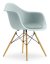 Eames Plastic Armchair RE DAW, Gris bleuté, Avec coussin d'assise, Bleu glacier / ivoire, Version standard - 43 cm, Frêne tons miel