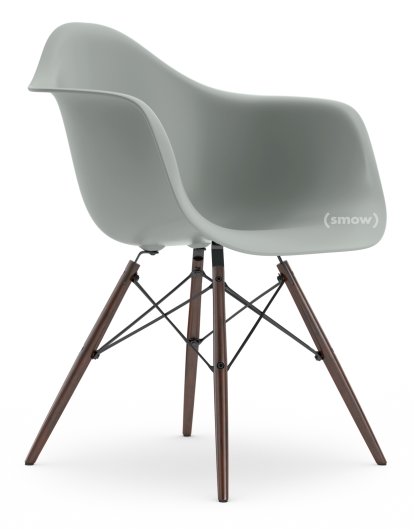 En utilisant des procédés de fabrications et des matériaux nouveaux, Charles et Ray Eames révolutionnèrent plus d’une fois l’histoire du mobilier. Ce fut le cas notamment avec les plastic chairs, qui furent conçues en 1948 à l’occasion du concours organisé par le Museum of Modern Art de New York : "International Competition for Low Cost Furniture". Avec leurs chaises dont l’assise est constituée d’un seul bloc en résine de polyester renforcée de fibre de verre, les Eames remportèrent la deuxième place. Ce matériau présentait de nombreux avantages parmi lesquels sa souplesse, son prix abordable et la possibilité de produire les chaises en grandes séries, ce qui répondait tout à fait aux besoins de l’Amérique des années 1950. En plus du fauteuil DAW, Charles et Ray Eames créèrent bien d’autres chaises en plastique adaptées à diverses situations grâce à différents types d’assises et de piètements. On les retrouve d’ailleurs aujourd’hui dans de nombreux musées et dans un nombre incalculable de foyers. Pour ce qui est du Eames DAW, il s’agit d’un fauteuil confortable avec des pieds en érable. Charles et Ray Eames décrivaient l'un de leurs objectifs primordiaux en tant que créateurs de mobilier comme suit : « Rendre le meilleur accessible au plus grand nombre ». Parmi leurs créations, aucune autre ne semble leur avoir permis de s'approcher autant de cet idéal que le fauteuil DAW.