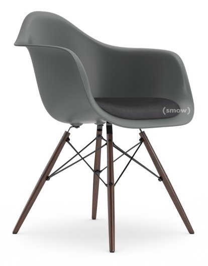 Eames Plastic Armchair RE DAW Gris granit|Avec coussin d'assise|Gris foncé|Version standard - 43 cm|Érable foncé
