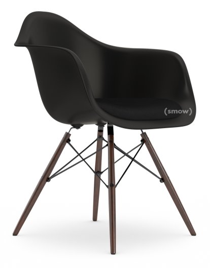Eames Plastic Armchair RE DAW, Noir profond , Avec coussin d'assise, Nero, Version standard - 43 cm, Érable foncé
