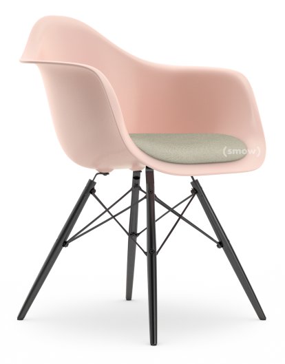 Eames Plastic Armchair RE DAW, Rose pâle, Avec coussin d'assise, Gris chaud / ivoire, Version standard - 43 cm, Érable noir