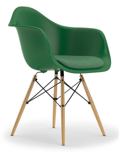 En utilisant des procédés de fabrications et des matériaux nouveaux, Charles et Ray Eames révolutionnèrent plus d’une fois l’histoire du mobilier. Ce fut le cas notamment avec les plastic chairs, qui furent conçues en 1948 à l’occasion du concours organisé par le Museum of Modern Art de New York : "International Competition for Low Cost Furniture". Avec leurs chaises dont l’assise est constituée d’un seul bloc en résine de polyester renforcée de fibre de verre, les Eames remportèrent la deuxième place. Ce matériau présentait de nombreux avantages parmi lesquels sa souplesse, son prix abordable et la possibilité de produire les chaises en grandes séries, ce qui répondait tout à fait aux besoins de l’Amérique des années 1950. En plus du fauteuil DAW, Charles et Ray Eames créèrent bien d’autres chaises en plastique adaptées à diverses situations grâce à différents types d’assises et de piètements. On les retrouve d’ailleurs aujourd’hui dans de nombreux musées et dans un nombre incalculable de foyers. Pour ce qui est du Eames DAW, il s’agit d’un fauteuil confortable avec des pieds en érable. Charles et Ray Eames décrivaient l'un de leurs objectifs primordiaux en tant que créateurs de mobilier comme suit : « Rendre le meilleur accessible au plus grand nombre ». Parmi leurs créations, aucune autre ne semble leur avoir permis de s'approcher autant de cet idéal que le fauteuil DAW.