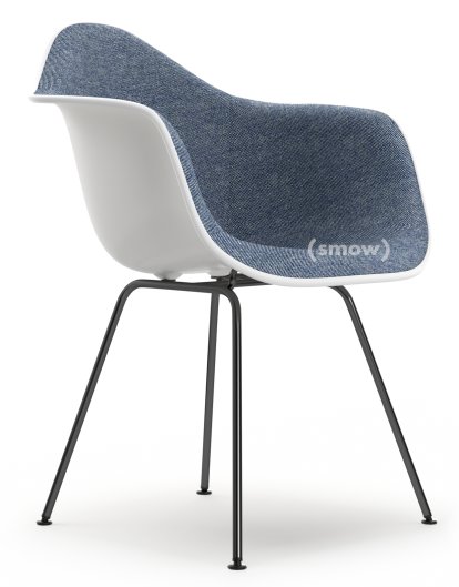 Eames Plastic Armchair RE DAX, Blanc non-RE, Rembourrage intégral, Bleu foncé / ivoire, Version standard - 43 cm, Revêtement basic dark