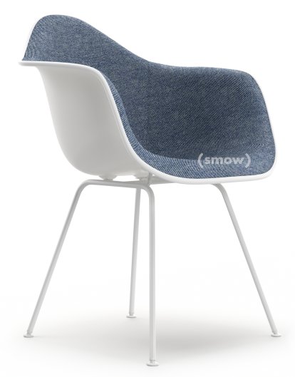 Eames Plastic Armchair RE DAX, Blanc non-RE, Rembourrage intégral, Bleu foncé / ivoire, Version standard - 43 cm, Revêtement blanc