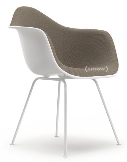 Eames Plastic Armchair RE DAX, Blanc non-RE, Rembourrage intégral, Gris chaud / marron marais, Version standard - 43 cm, Revêtement blanc
