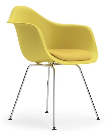 Eames Plastic Armchair RE DAX, Citron, Avec coussin d'assise, Jaune / ivoire, Version standard - 43 cm, Chromé