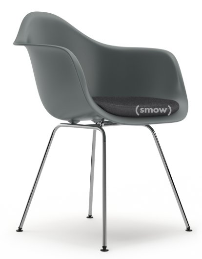 Eames Plastic Armchair RE DAX, Gris granit, Avec coussin d'assise, Gris foncé, Version standard - 43 cm, Chromé