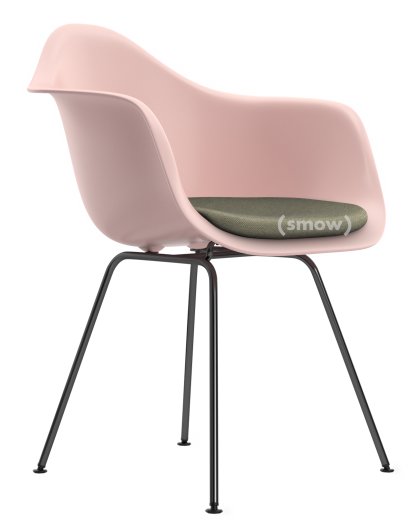 Eames Plastic Armchair RE DAX, Rose pâle, Avec coussin d'assise, Gris chaud / ivoire, Version standard - 43 cm, Revêtement basic dark