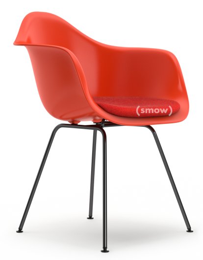 Eames Plastic Armchair RE DAX, Rouge (rouge coquelicot), Avec coussin d'assise, Corail / rouge coquelicot, Version standard - 43 cm, Revêtement basic dark