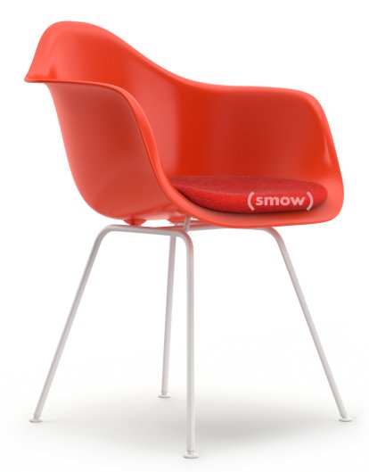 Eames Plastic Armchair RE DAX, Rouge (rouge coquelicot), Avec coussin d'assise, Corail / rouge coquelicot, Version standard - 43 cm, Revêtement blanc