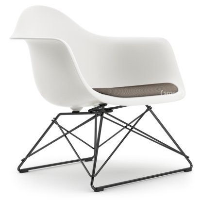 Eames Plastic Armchair RE LAR, Blanc non-RE, Coussin d'assise gris chaud / marron marais, Revêtement basic dark