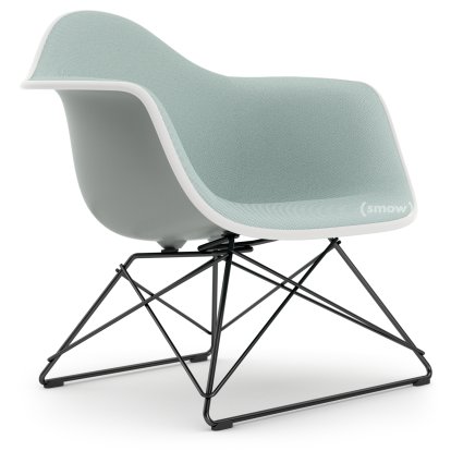 Eames Plastic Armchair RE LAR, Gris clair, Rembourrage intégral bleu glacier / ivoire, Revêtement basic dark