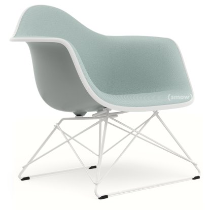 Eames Plastic Armchair RE LAR, Gris clair, Rembourrage intégral bleu glacier / ivoire, Revêtement blanc