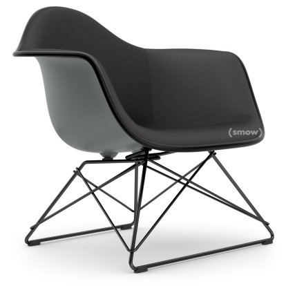 Eames Plastic Armchair RE LAR, Gris granit, Rembourrage intégral gris foncé, Revêtement basic dark
