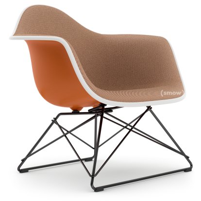Eames Plastic Armchair RE LAR, Orange rouille, Rembourrage intégral cognac /ivoire, Revêtement basic dark