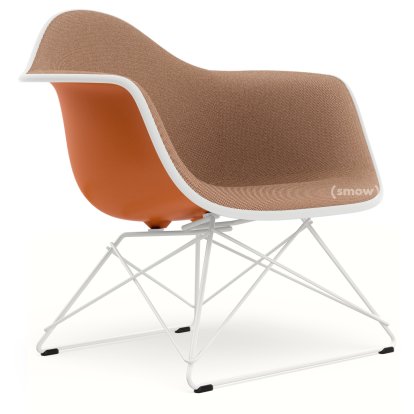 Eames Plastic Armchair RE LAR, Orange rouille, Rembourrage intégral cognac /ivoire, Revêtement blanc