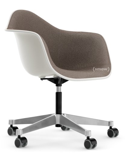 Eames Plastic Armchair RE PACC, Blanc non-RE, Rembourrage intégral, Gris chaud / marron marais