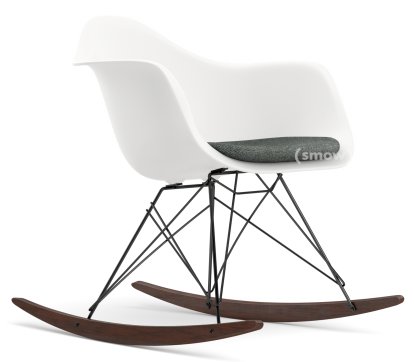 Eames Plastic Armchair RE RAR avec rembourrage, Blanc non-RE, Avec coussin d'assise, Nero / ivoire, Sans passepoile, Basic dark/érable foncé