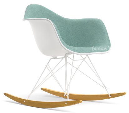 Eames Plastic Armchair RE RAR avec rembourrage, Blanc non-RE, Rembourrage intégral, Bleu glacier / ivoire, Blanc, Blanc/érable nuance de jaune
