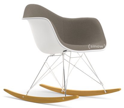 Eames Plastic Armchair RE RAR avec rembourrage, Blanc non-RE, Rembourrage intégral, Gris chaud / marron marais, Blanc, Chromé/érable nuance de jaune