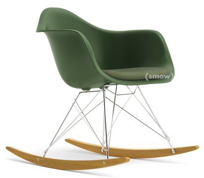 Eames Plastic Armchair RE RAR avec rembourrage, Forêt, Avec coussin d'assise, Ivoire / forêt, Sans passepoile, Chromé/érable nuance de jaune