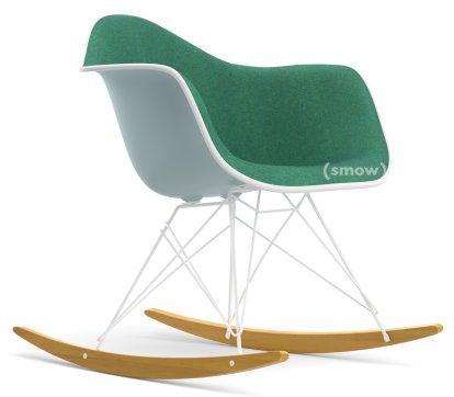 Eames Plastic Armchair RE RAR avec rembourrage, Gris bleuté, Rembourrage intégral, Menthe / forêt, Blanc, Blanc/érable nuance de jaune