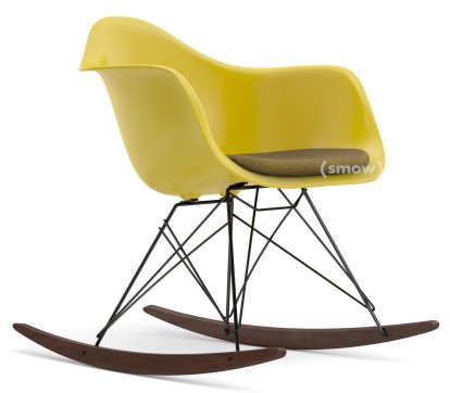 Eames Plastic Armchair RE RAR avec rembourrage, Moutarde, Avec coussin d'assise, Moutarde / ivoire, Sans passepoile, Basic dark/érable foncé