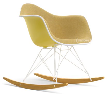 Eames Plastic Armchair RE RAR avec rembourrage, Moutarde, Rembourrage intégral, Moutarde / ivoire, Blanc, Blanc/érable nuance de jaune